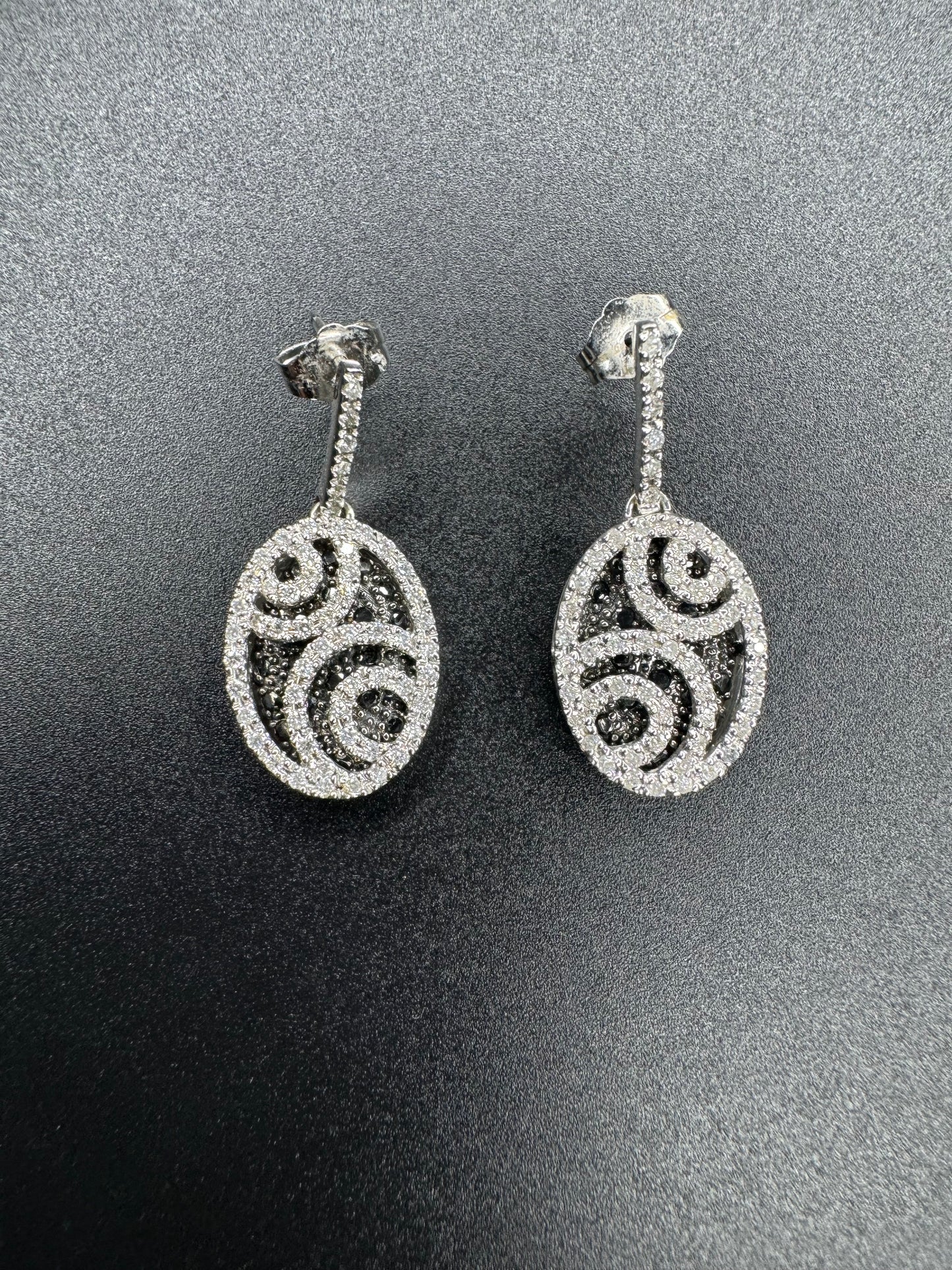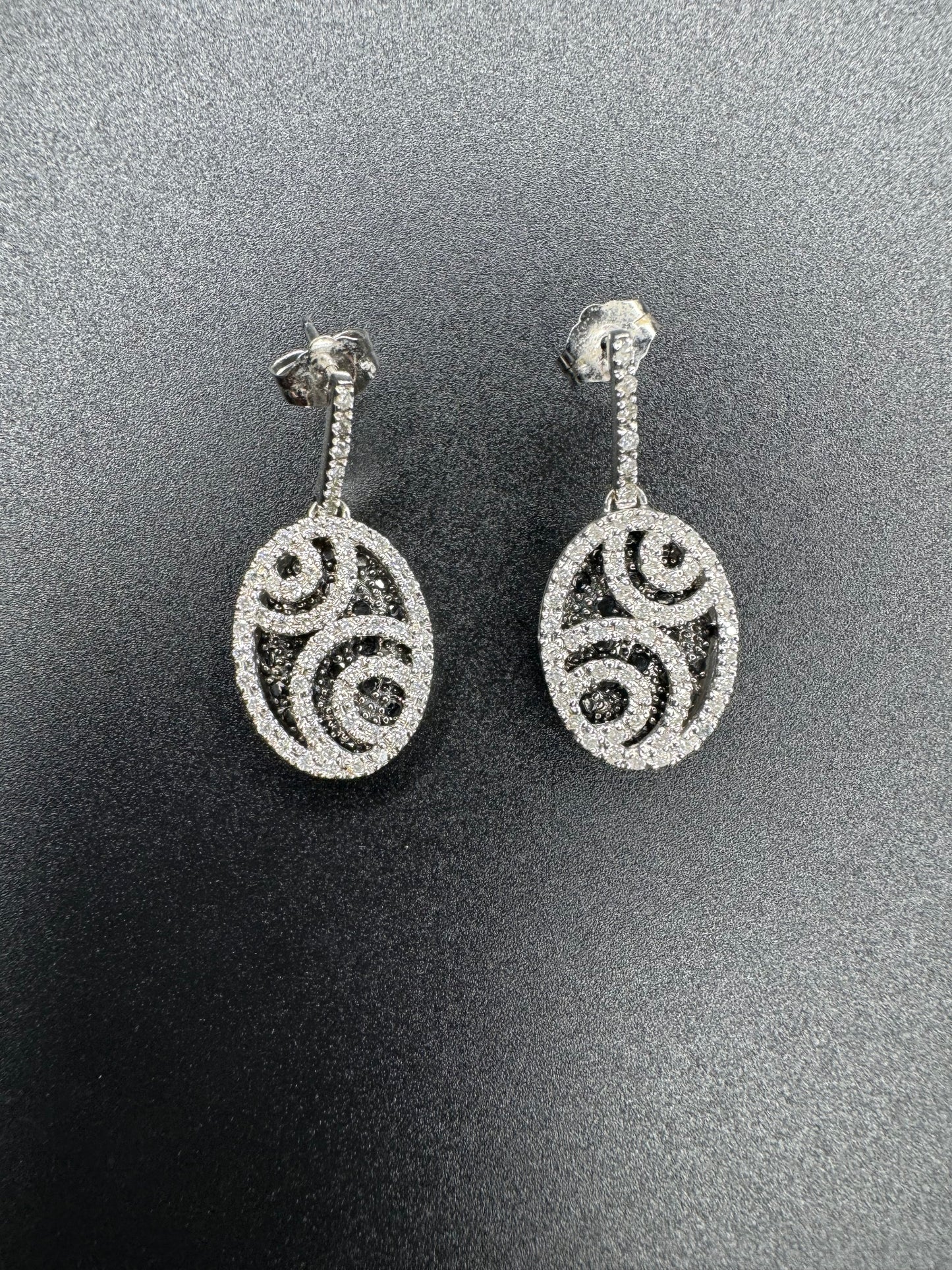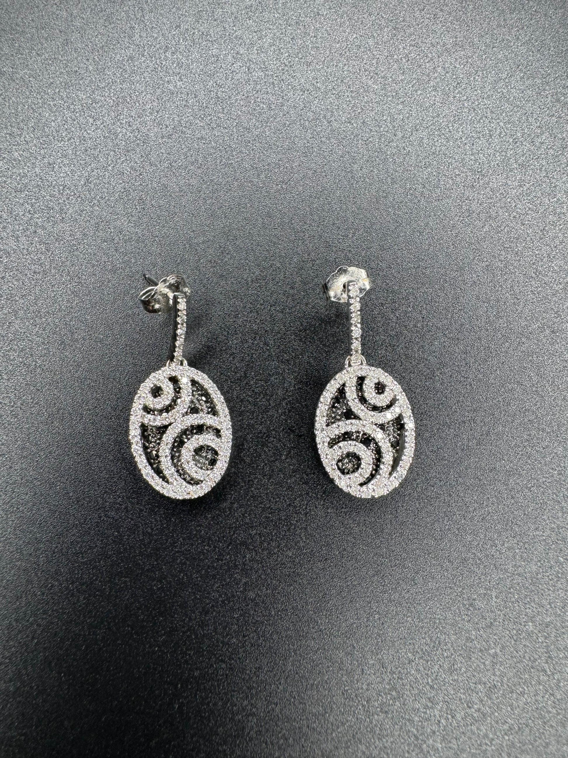 14k White Gold , white Diamonds & Black Diamonds Drop Earrings