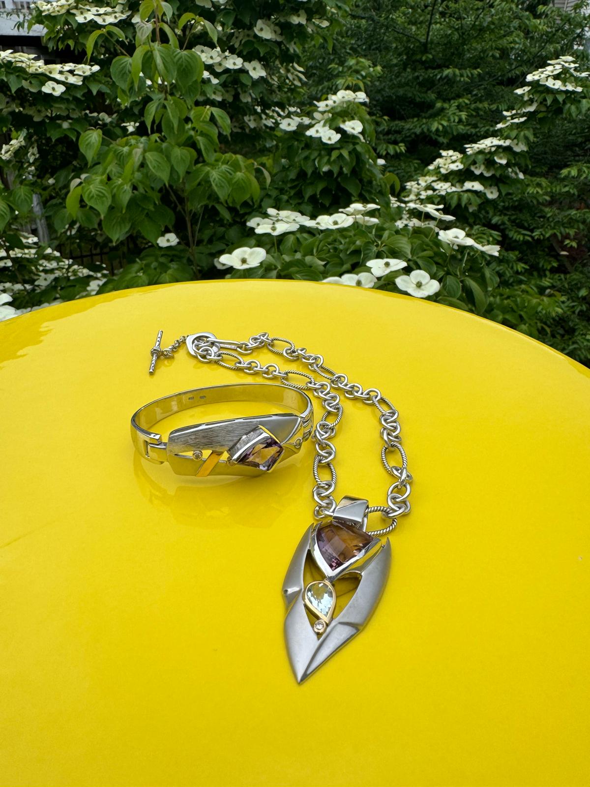 Two Tone Amethyst & Aquamarine Designer Necklaces