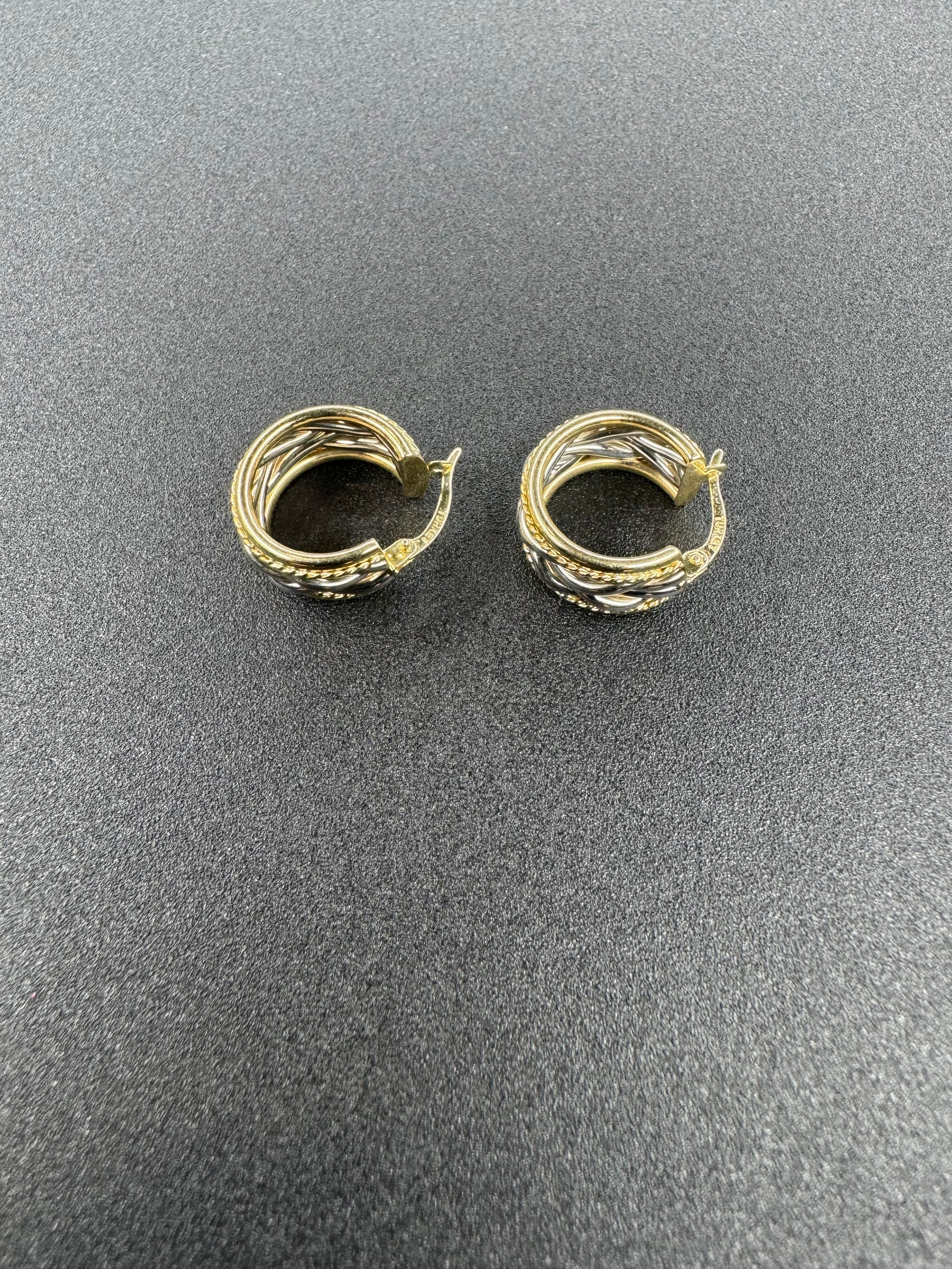 Sterling Silver & 18k Yellow Gold Hoop Earrings on Posts